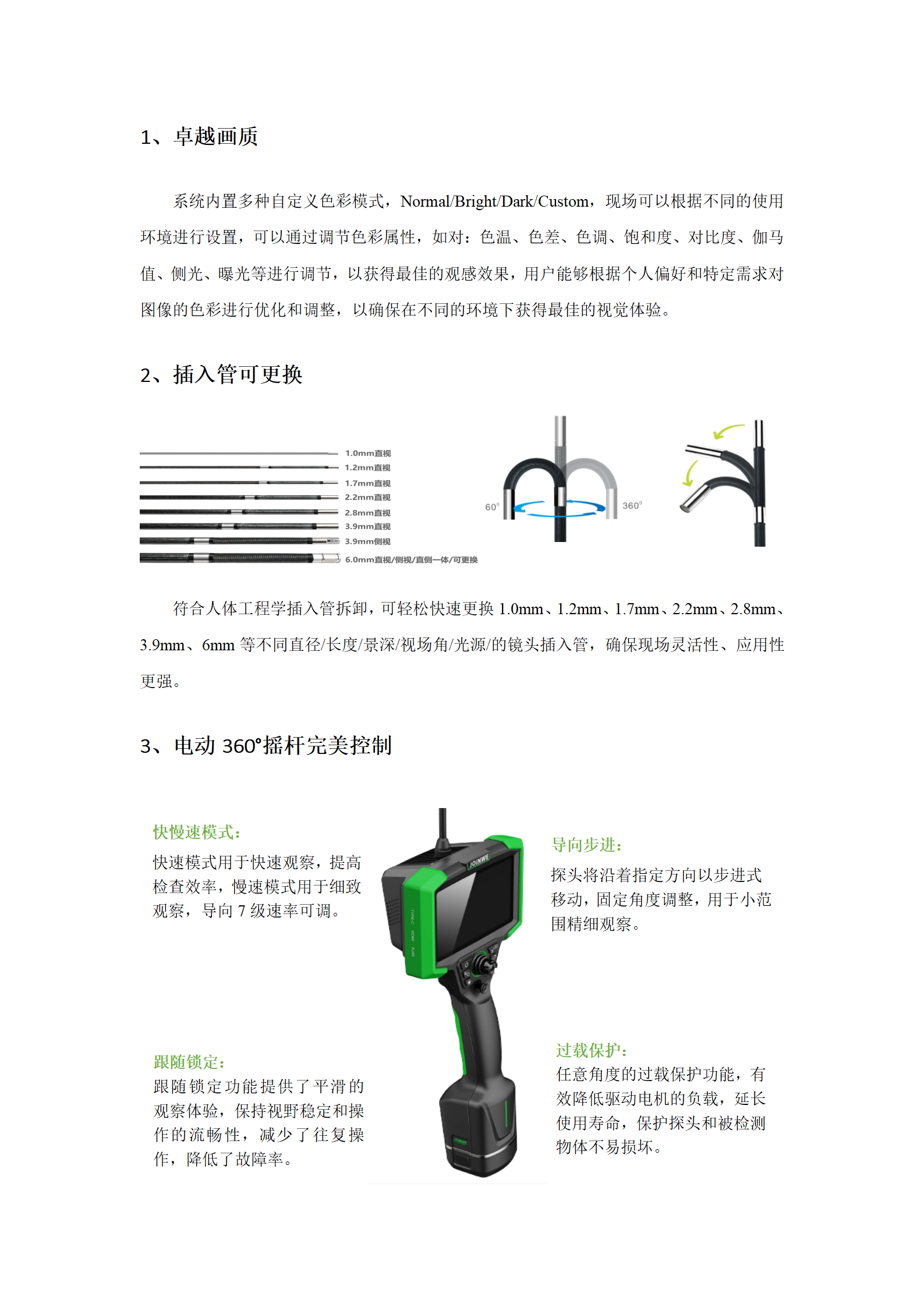 探頭轉(zhuǎn)向 | 電動(dòng)搖桿360°,全方位鏡頭導(dǎo)向 |